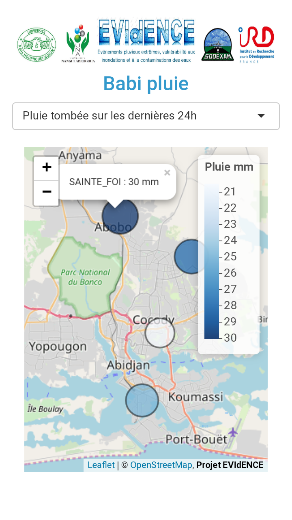 Livrables : Site Web, Base d'information spatialisée, Information temps réel Pluie et Hauteur d'eau rivière
